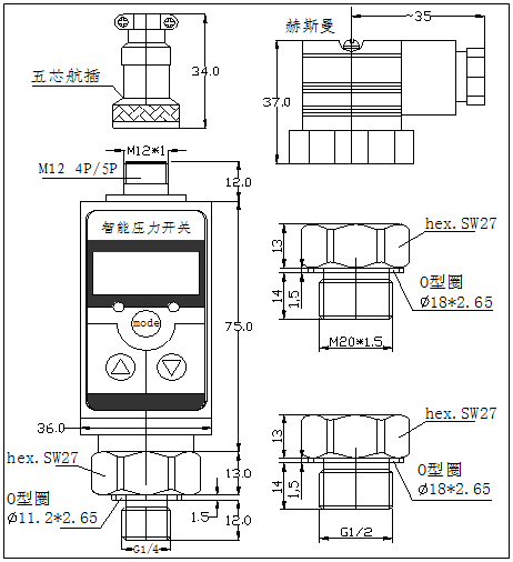 该产品为全电子结构,前端采用带隔离膜充油压阻式麻豆自慰在线观看传感器,输出信号由高精度,低温漂的放大器放大处理,送入高精度的A/D转换器,转换成微处理器可以处理的数字信号,经过运算处理的信号控制两路开关,对控制系统麻豆自慰在线观看进行测控